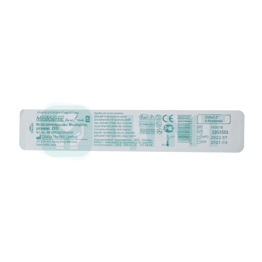 Технические характеристики Игла спинальная Medispine, размер: 21G