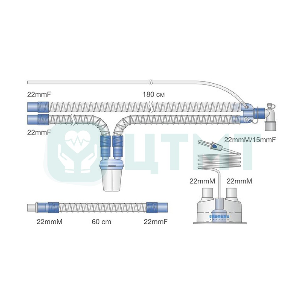 • Контур дыхательный для ИВЛ гладкоствольный ?15 мм 150 см с влагосборником и увлажнителем