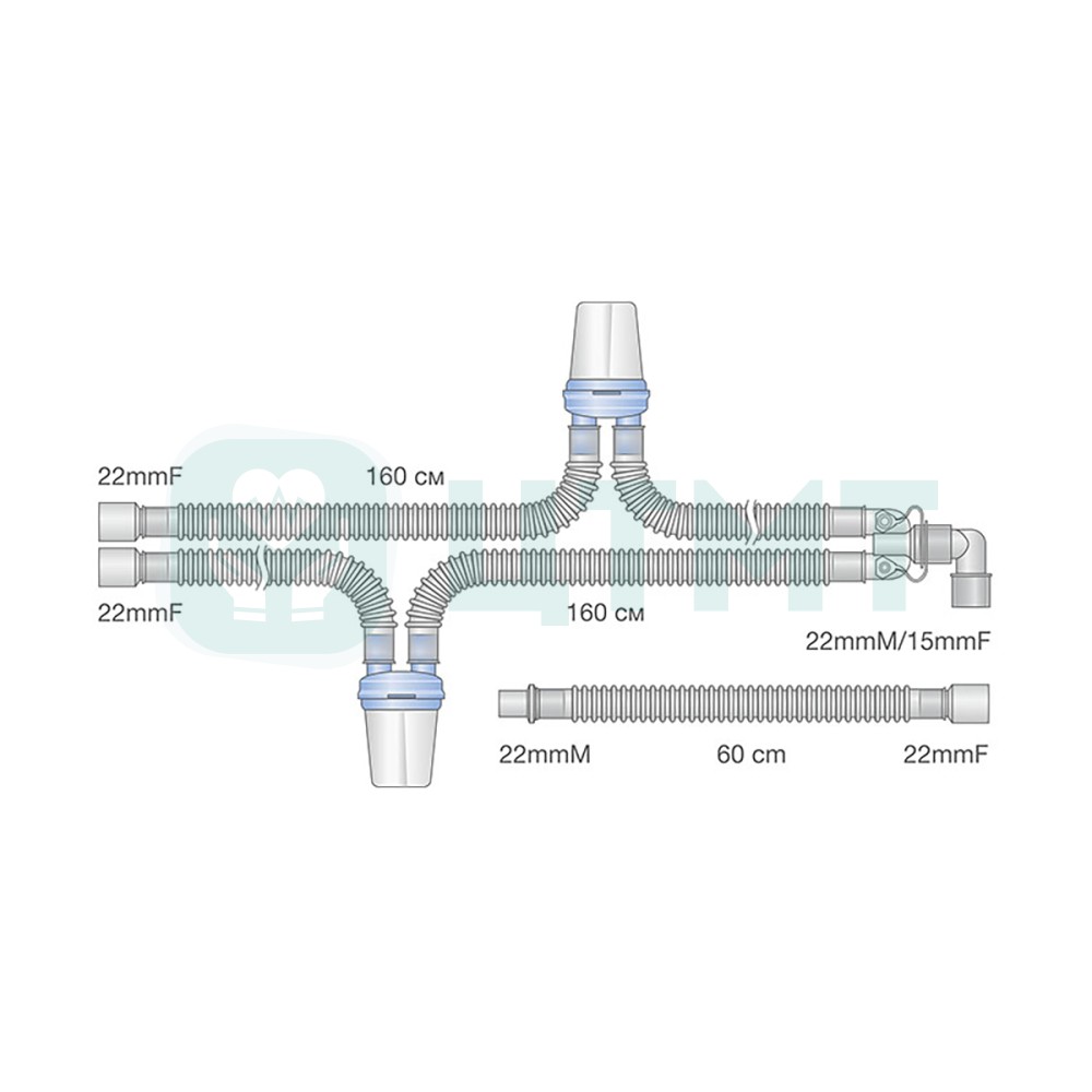 • Контур дыхательный с обогревом линии вдоха/выдоха, детский, гофрированный, Ø12 мм, в составе: трубка вдоха 110 см с линией обогрева с доп. сегментом 3