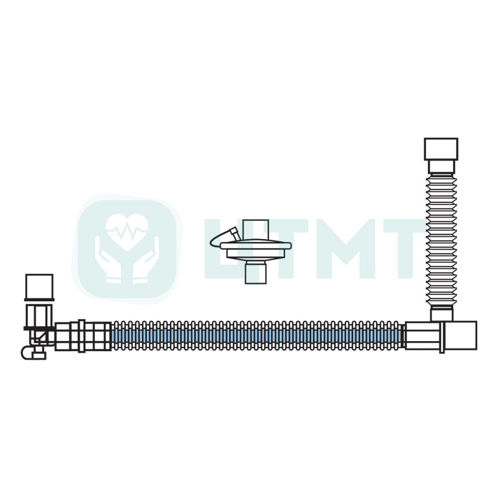 Длина трубки 180 см, дополнительная трубка выдоха 40 см, 22М/15F коннекторы к пациенту, 22F коннекторы к аппарату ИВЛ.