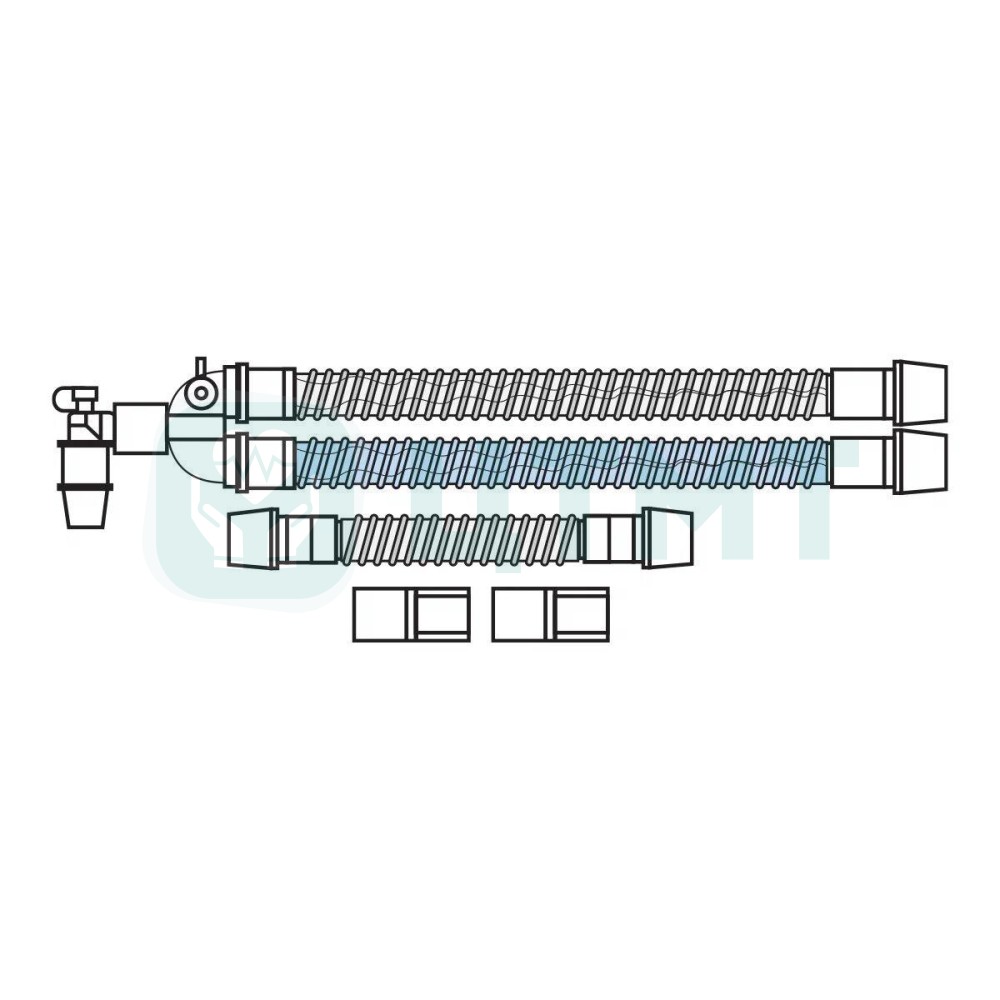 Со стороны пациента Y-образный коннектор с разъемом 22М/15F со съемной крышкой с держателем и коннекторы со стороны аппарата с разъемом 22F - прямой у линии выдоха, Г-образный у линии вдоха, также у Y-образного коннектора в наличии порт для контроля капнографии с заглушкой со съемной крышкой с держателем.