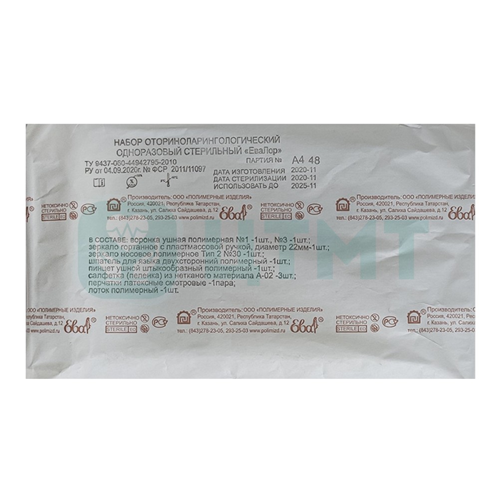 Набор отоларингологический одноразовый ЕваЛор №1 0.00 ₽ / шт
