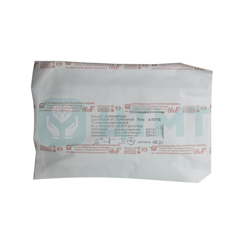 Пинцет 15 см одноразовый, стерильный в лотке 0.00 ₽ / шт
