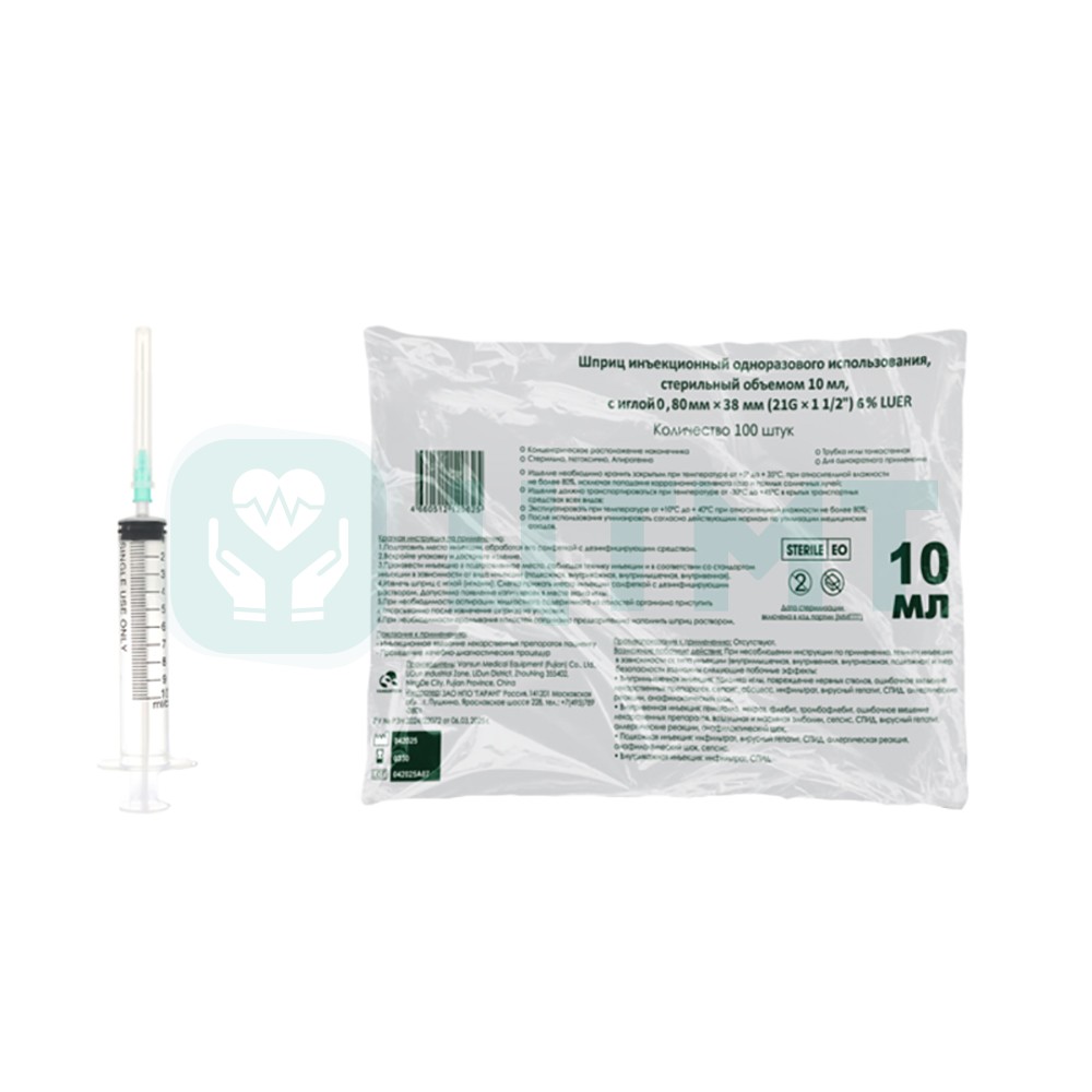 Шприц 10мл. (3-х) с надетой иглой 0,8х38 – 21G  3.29 ₽ / шт.