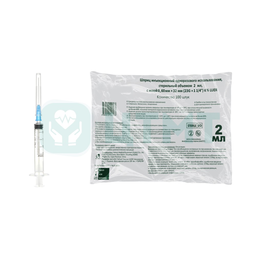 • Шприц 2мл. (3-х) с надетой иглой 0,6 x 32 - 23G