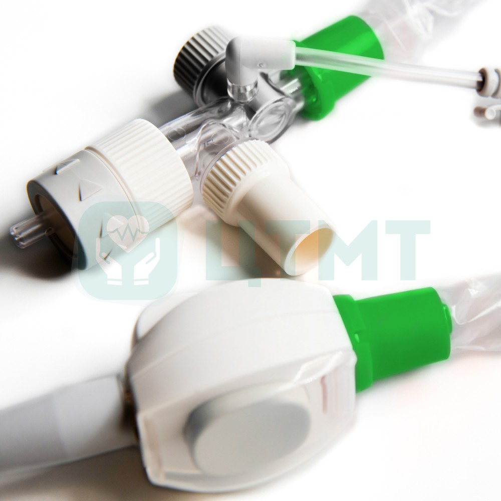 • Подключается к интубационной трубке, трахеостомической, эндотрахеальной, дыхательному контуру, вакуумному аспиратору, существенно снижает проникновение любой бактериальной флоры за пределы рукава при работе с системой.