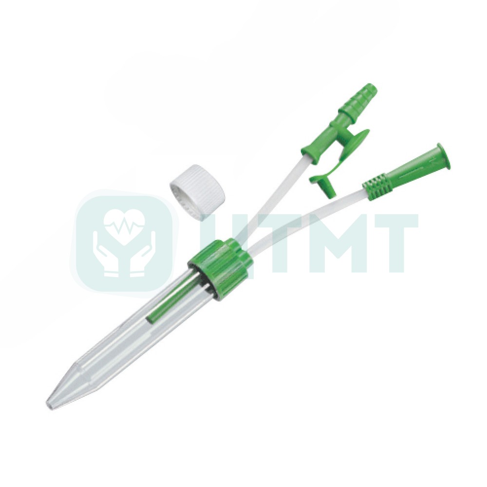 Устройства для забора проб трахеобронхиальных аспиратов с целью бактериологического или цитологического исследования у пациентов, которым проводится искусственная вентиляция легких. Это позволяет на ранних стадиях выявить вентилятор-ассоциированную пневмонию, правильно подобрать и своевременно изменить терапию. Забор исследуемого материала должен проводиться в стерильных условиях во избежание соприкосновения материала с внешней средой. Трахеа-Сет представляет собой замкнутый контейнер емкостью 10 мл, в крышке которого имеются два выхода (один для присоединения аспирационного катетера, второй – для соединения с источником вакуума).
