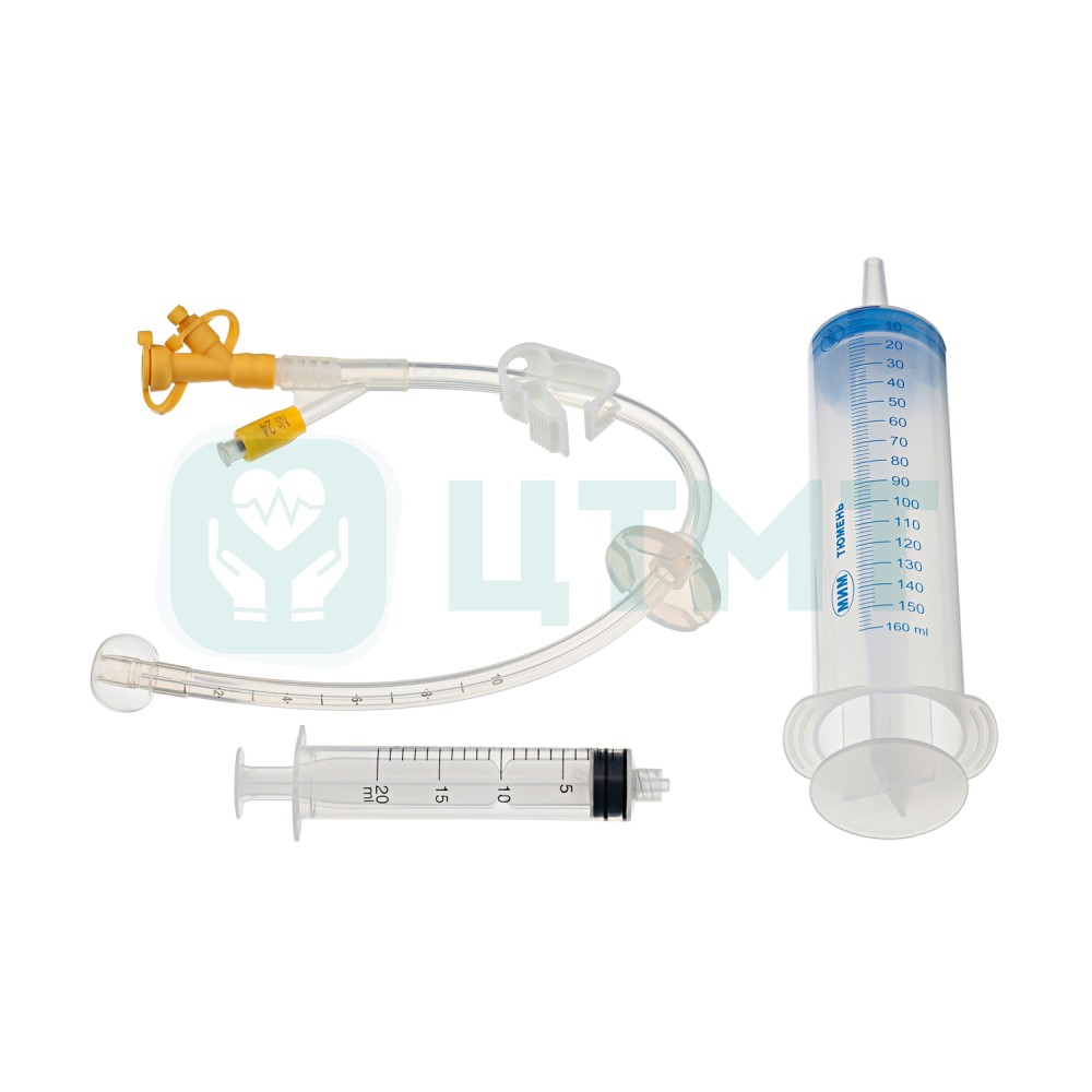 Большой (основной) канал служит для питания, малый канал — для раздувания баллона. Баллон предназначен для фиксации трубки внутри организма, для закрепления ее с внешней стороны трубка снабжена фиксатором. Узел разведения каналов имеет 3 порта: один центральный с заглушкой - для проведения кормления по питательному каналу, второй боковой с заглушкой – для введения лекарственных средств, третий боковой порт снабжён клапаном для раздувания/сдувания баллона.